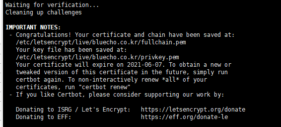 만약 letsencrypt 경로가 다르다면 적절하게 바꿔서 사용하길 바란다.