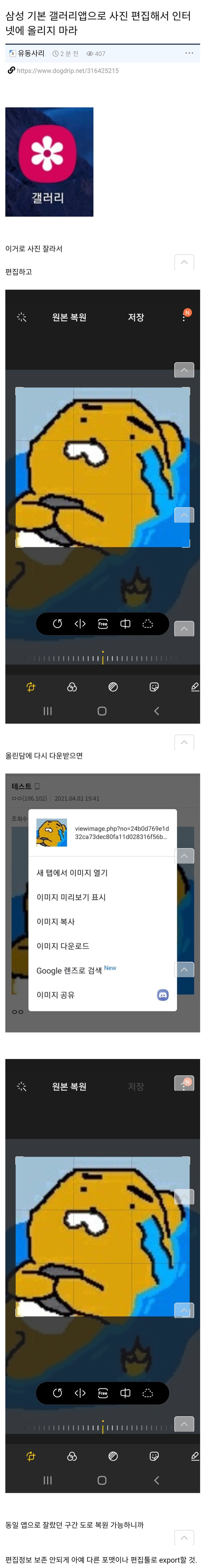 인터넷 커뮤니티 사진 올리고 받기 -> 일부 사진 복원 가능