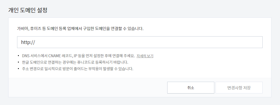 티스토리는 개인 도메인을 설정 할 수 있다.
