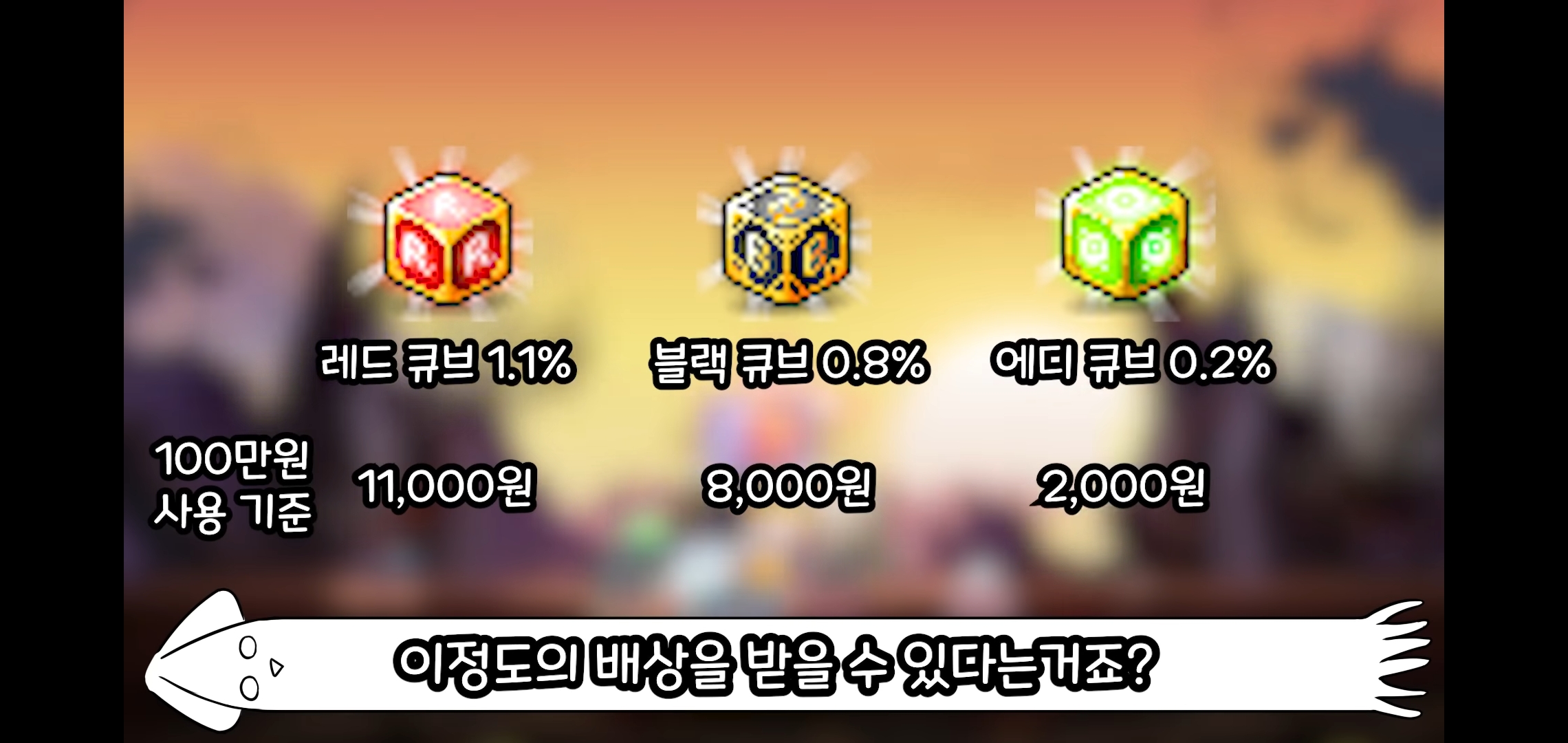 사용한 큐브의 최대 1.1%이하의 금액을 넥슨캐쉬로 보상