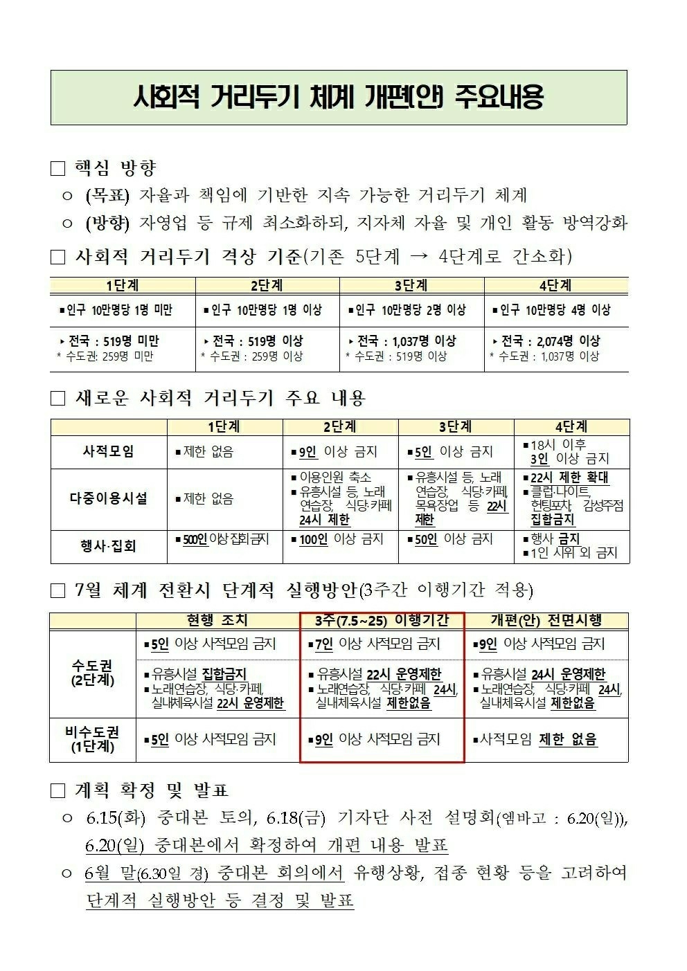 7월 5일부터 25일까지 일부 허용하다가
