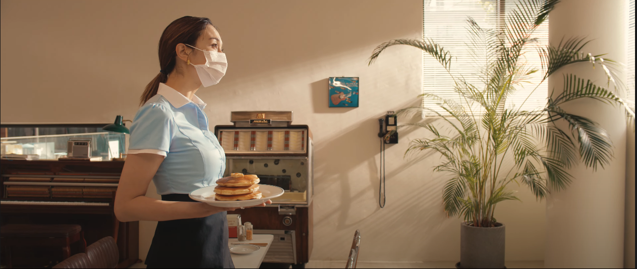 방탄의 이전곡 '버터'에 나온 팬케이크를 들고서 등장하는 웨이터
