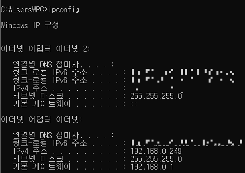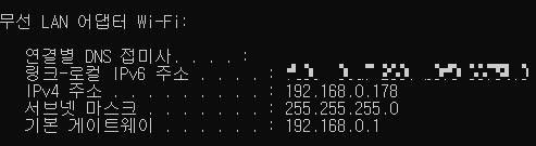IPv4 주소 라고 보통 192.168.x.y 로 되는 주소가 보일텐데 (위의 사진에서는 밑에 부분)